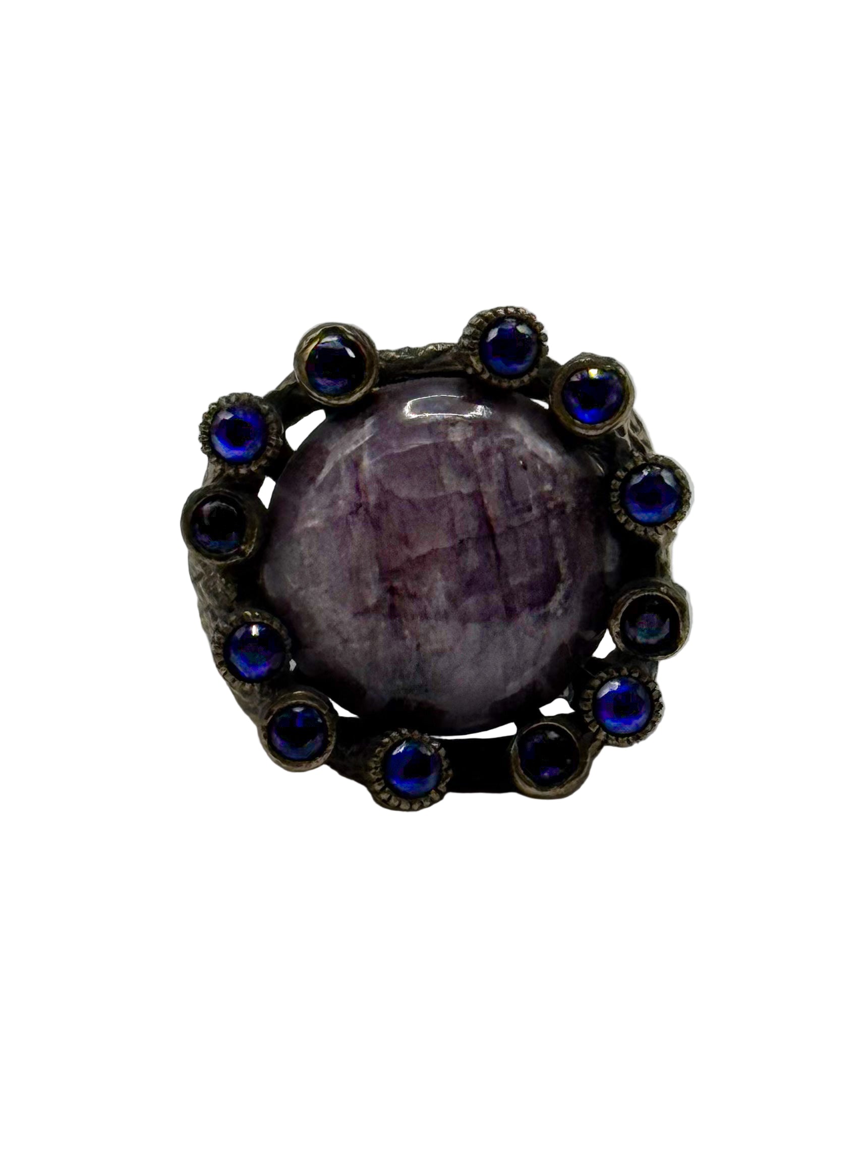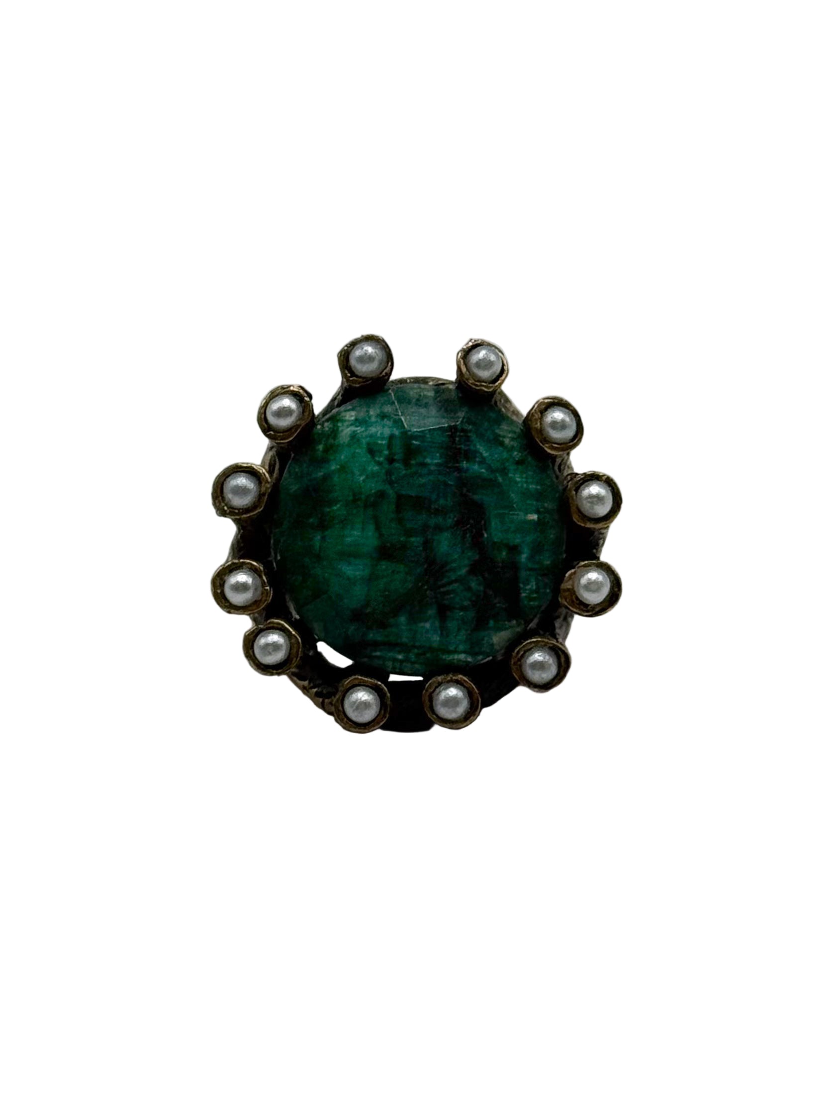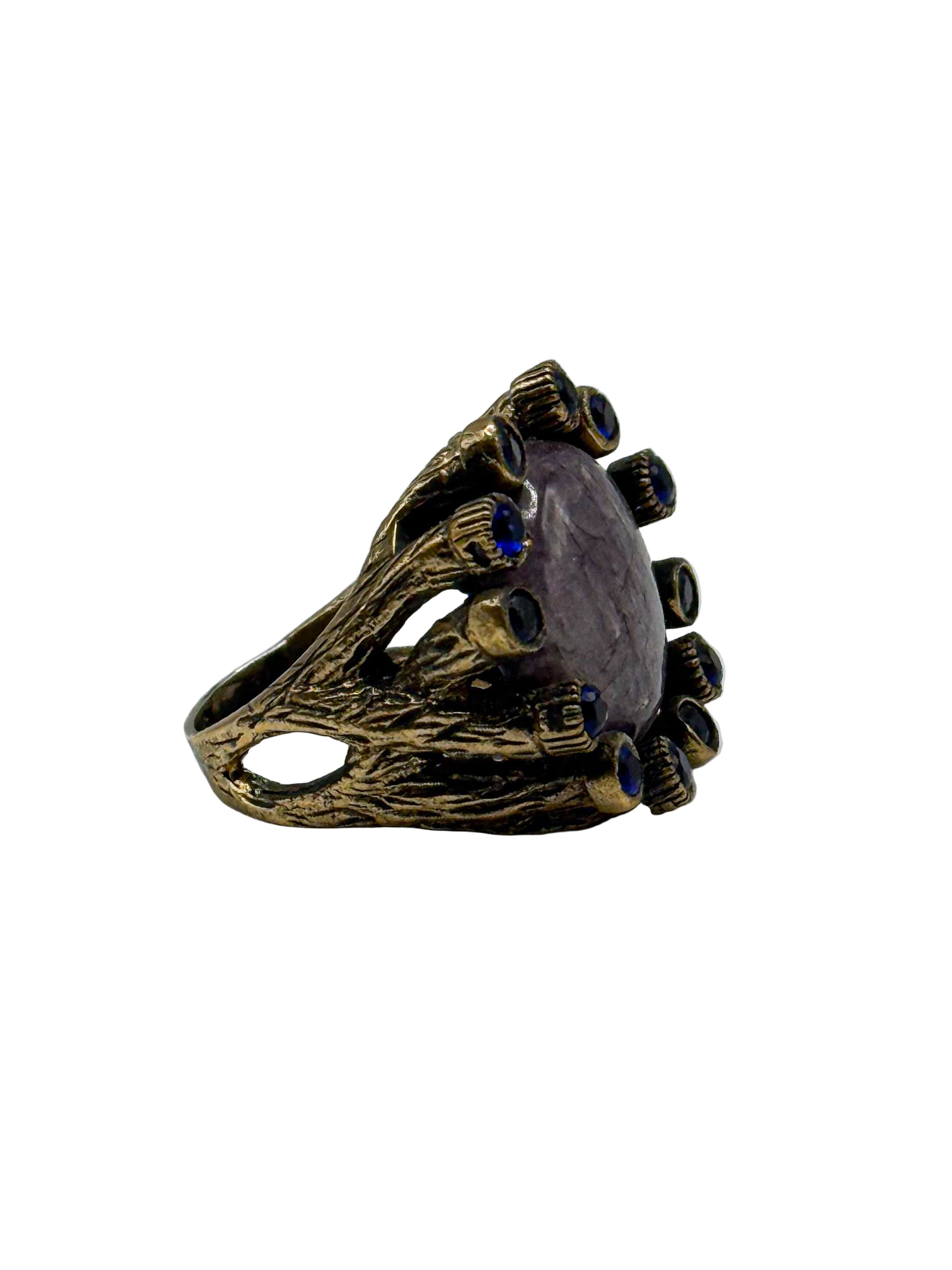 Anello in argento anticato placcato oro con pietre semipreziose e zirconi