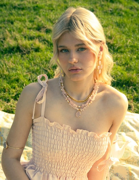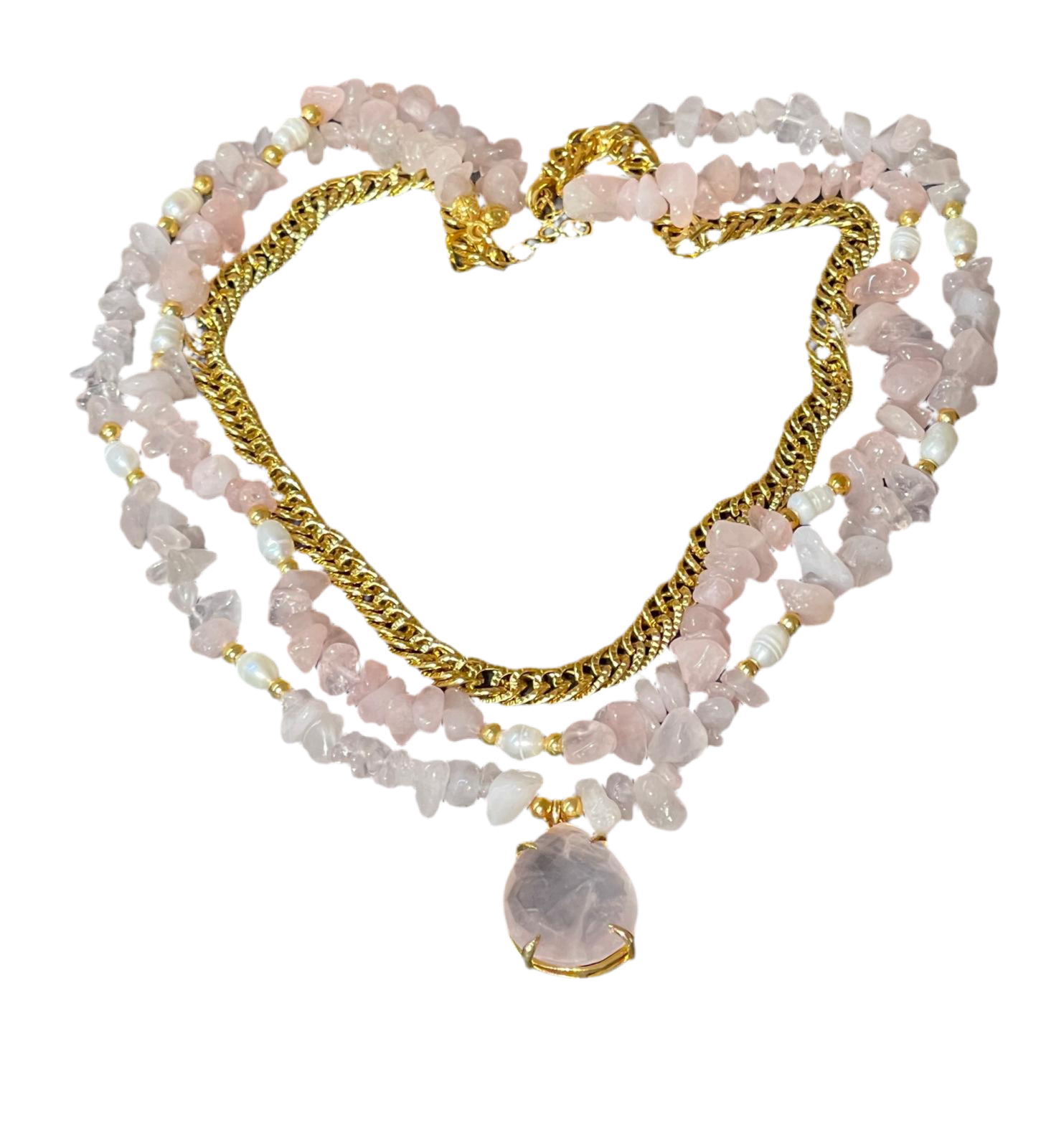 in ottone placcato oro e quarzo rosa