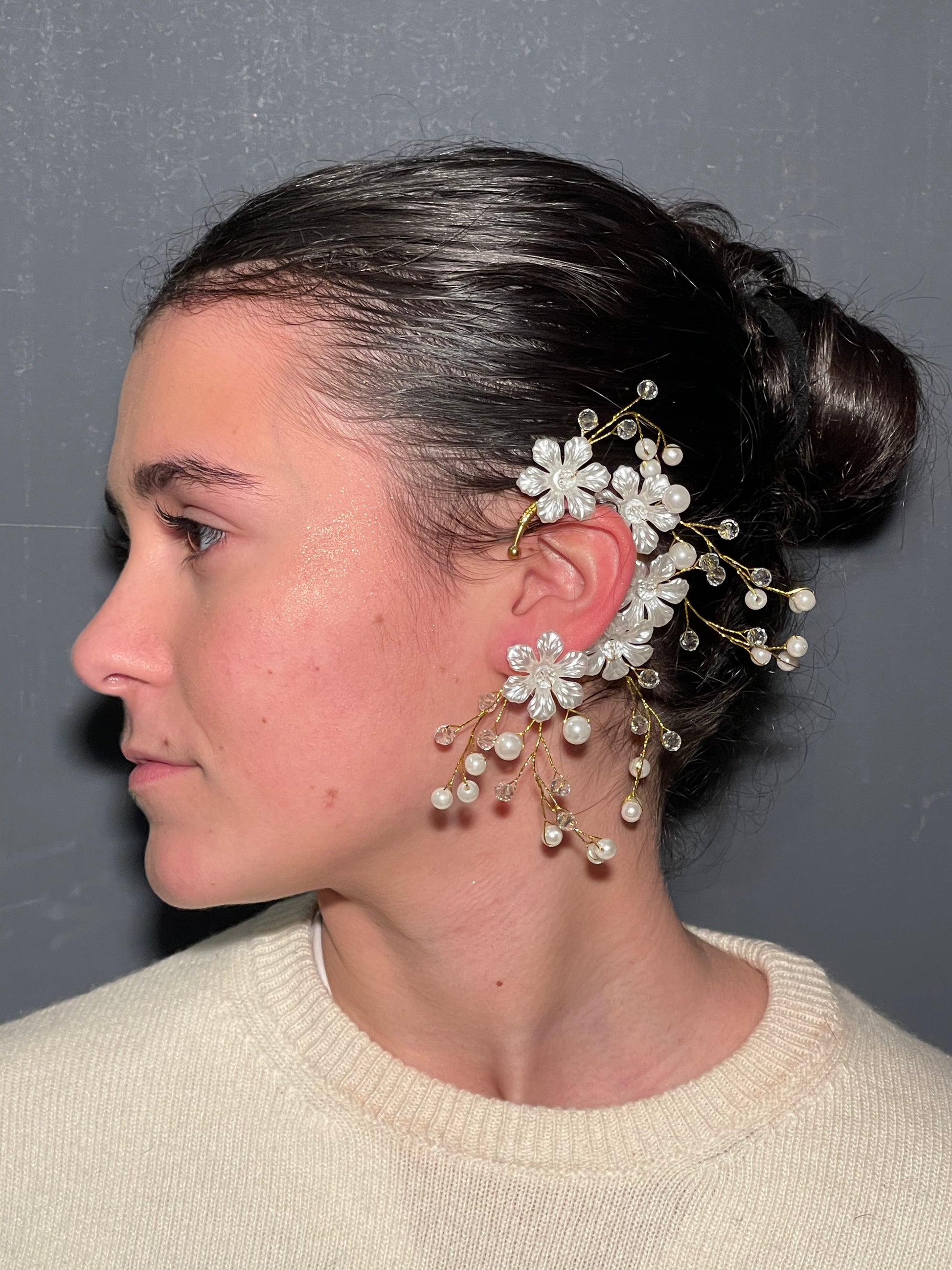 Ear cuff “Fiaba” in acciaio placcato oro 18 kt e fiori di lucite.